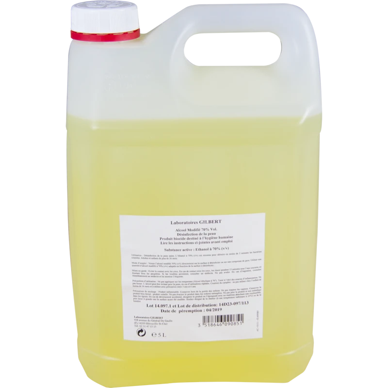 L’alcool modifié 70%, GILBERT HEALTHCARE est destiné à la désinfection de la peau saine. L’éthanol à 70 % (v/v) est reconnu pour détruire en moins de 2 minutes les bactéries cutanées.