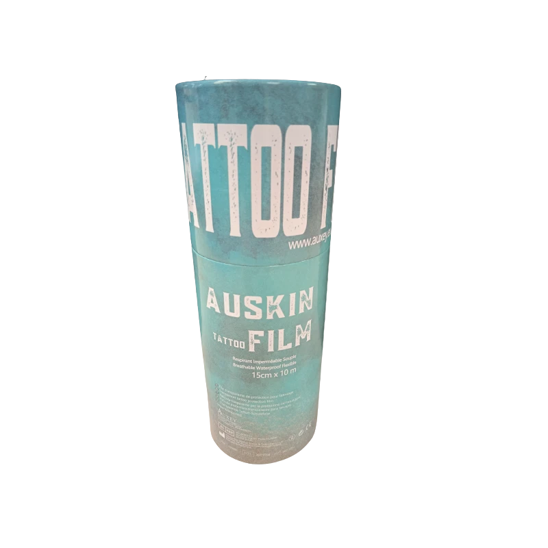 Tattoo Protection Film est un film ultra-mince, respirant, durable et imperméable à utiliser sur les tatouages frais pour aider à la cicatrisation de la peau.