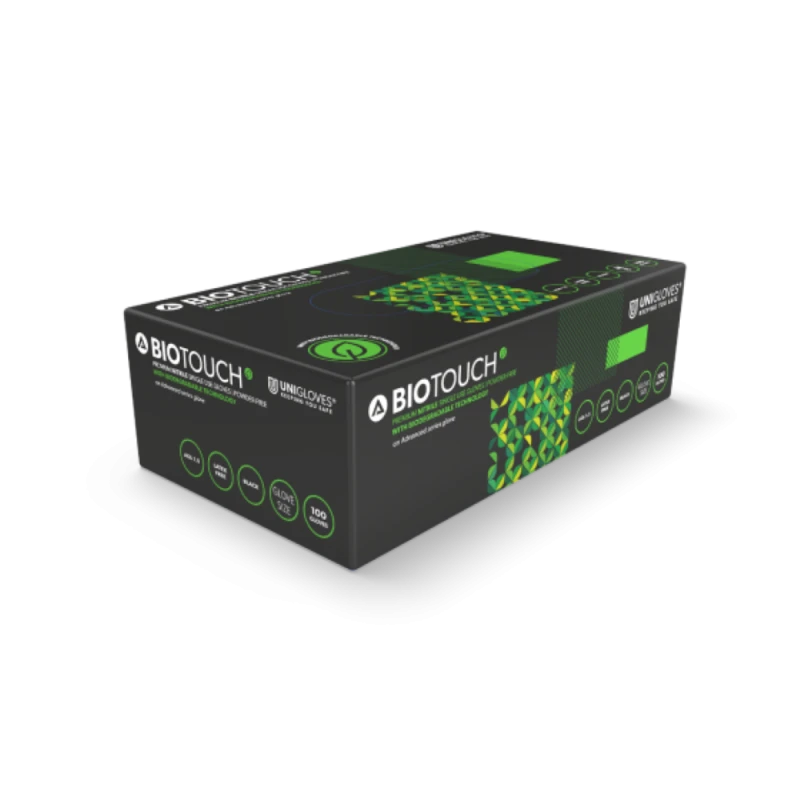 Les gants BioTouch sont respectueux de l’environnement et se biodégradent à 90 %. Le processus de biodégradation ne commence que lorsque le gant est éliminé dans un environnement de décharge actif.