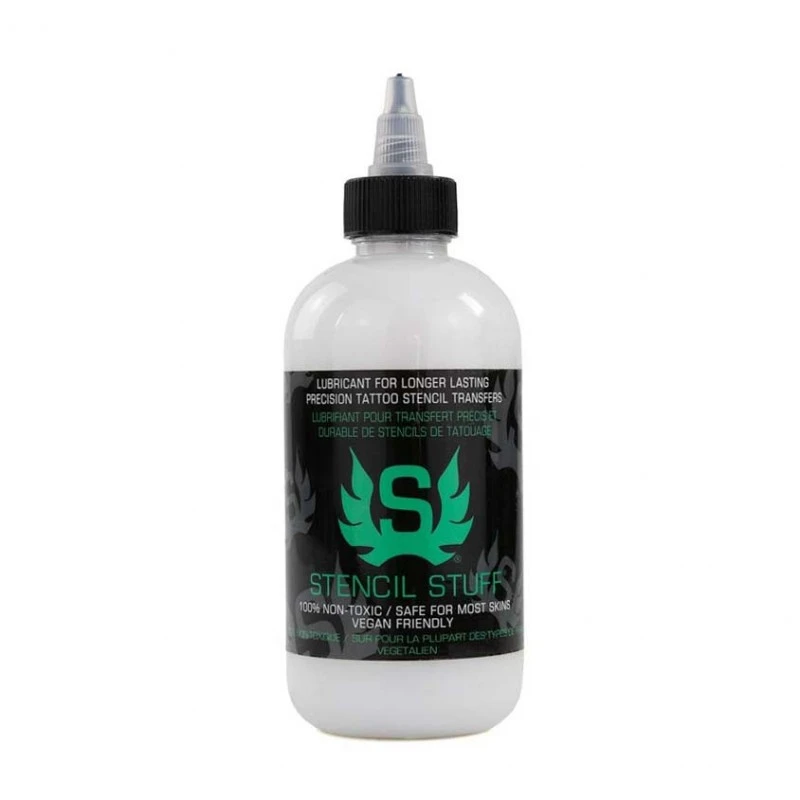 Stencil Stuff® rend le transfert de pochoir de tatouage plus propre et plus net que toutes les autres méthodes traditionnelles et élimine la possibilité de contamination croisée. Cette solution vous permettra d’obtenir des transferts stencils ultra-durables aux lignes nettes et impeccables. Stencil Stuff® est devenu une nécessité dans l’industrie du tatouage, utilisé quotidiennement par des milliers de tatoueurs professionnels.