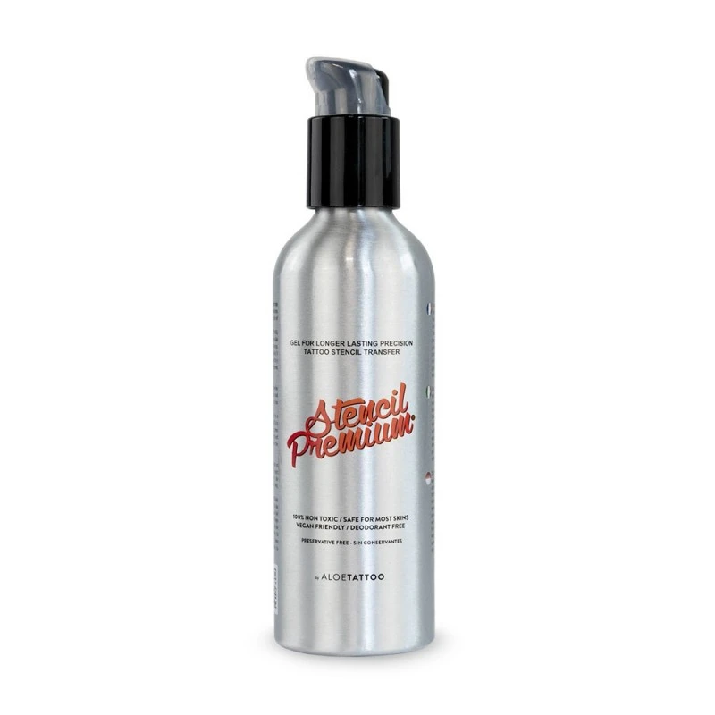 Le gel Stencil Premium est un gel transparent utilisé pour appliquer des pochoirs de tatouage sur la peau, sans déodorant et sans parfum.