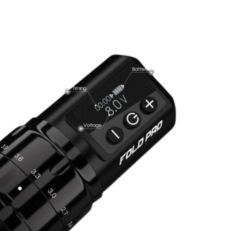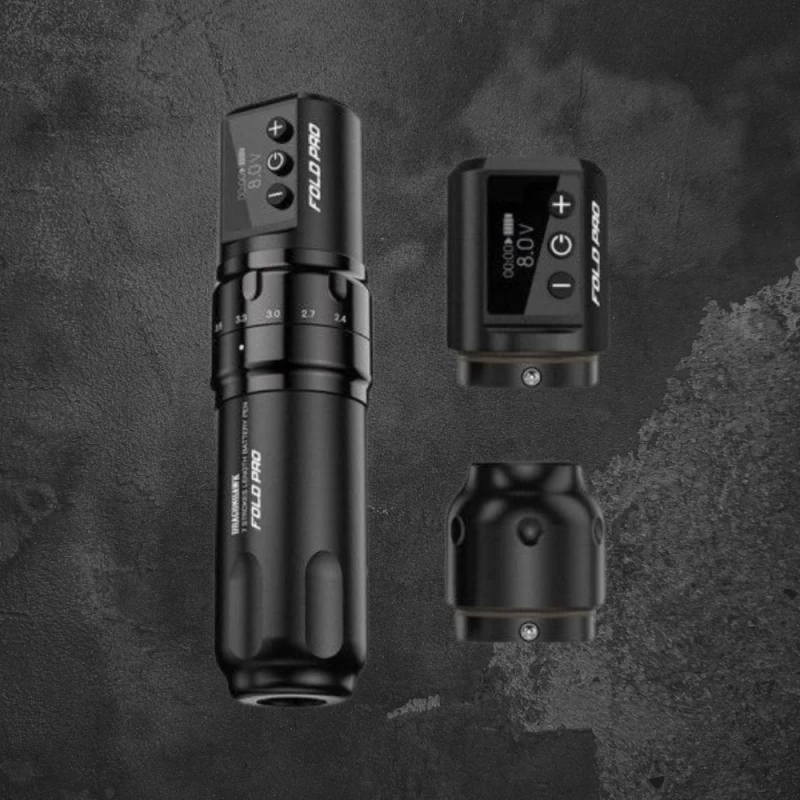 Conçue pour un fonctionnement sans fil grâce à sa batterie et pour une utilisation filaire grâce au connecteur RCA inclus, cette machine rotative en forme de stylo est dotée d’une poignée à mécanisme pour régler la profondeur de l’aiguille, ainsi que pour une distribution fluide de l’encre. Avec sa longueur de course réglable, la Fold Pro convient à toutes les procédures de tatouage et de PMU.